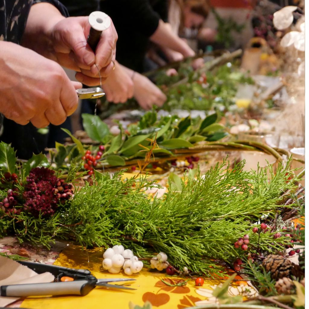 Taller d’una hora aproximadament. Treballarem amb verds frescos i s’inclouen les eines de feina. A més descobrirem tècniques de composició floral per realizar un