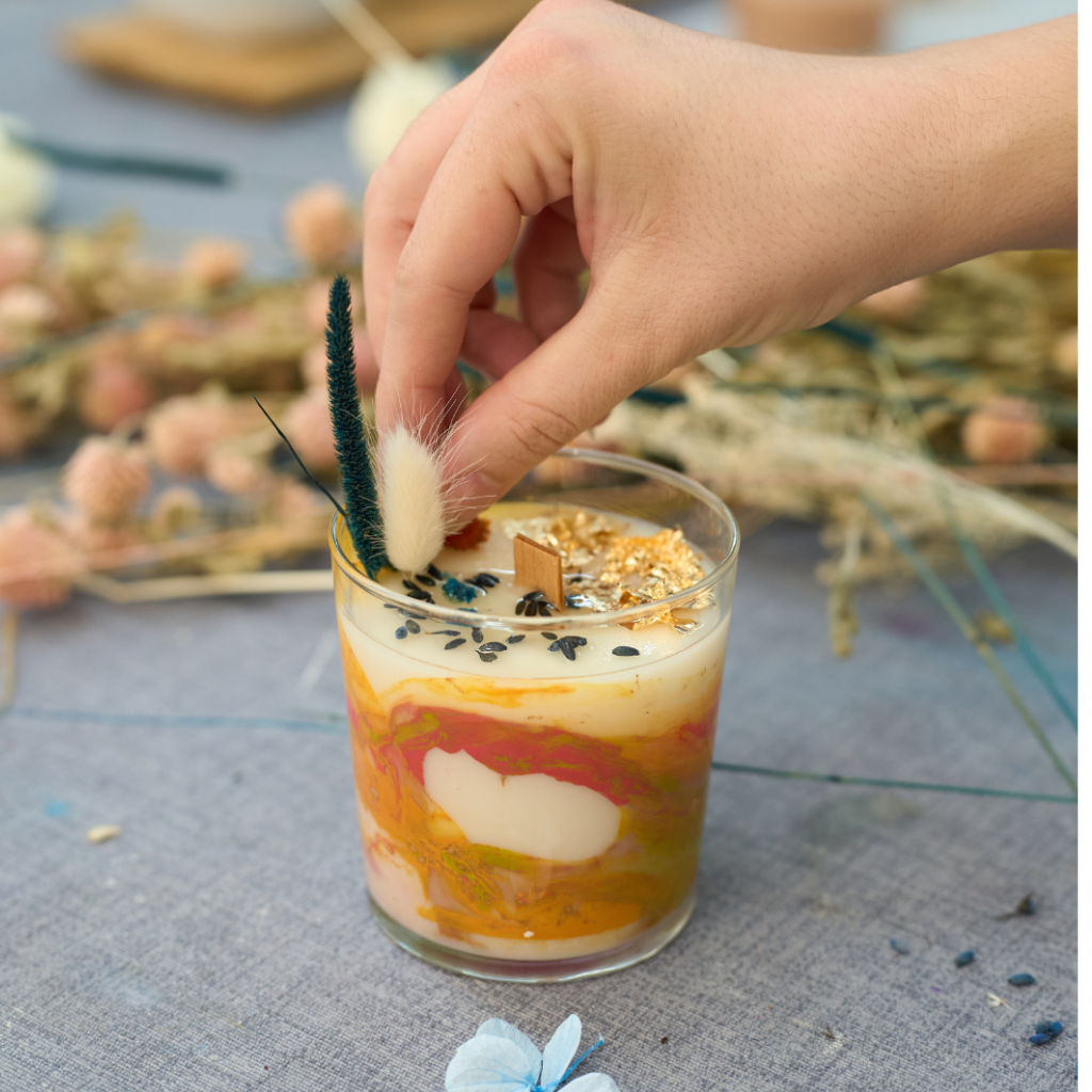 Taller d’una hora aproximadament La idea és decorar una espelma amb elements nadalencs i aprendre a fer-ne. A l’acabar el taller cadascú s’endurà la que hagi fet. Cada alumne obtindrà una espelma de 250ml de cera de soja, recipient i materials decoratius com herbes aromàtiques, motius nadalencs i olis essencials.